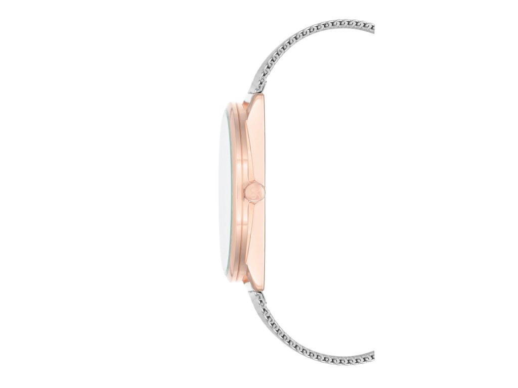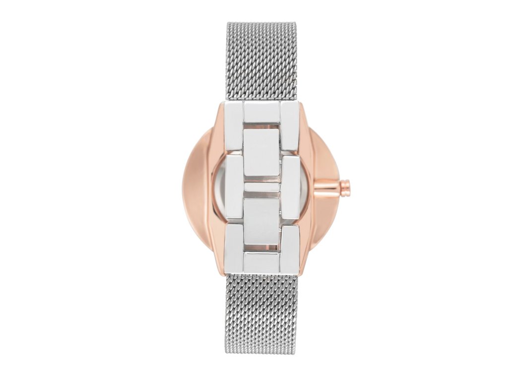 Dámské hodinky kombinující růžové zlato s nadčasovou šedou. Šedý číselník má čárkové indexy v barvě růžového zlata. Šedostříbrný perforovaný řemínek dělá z hodinek velice elegantní kousek.Doplňkové parametry
