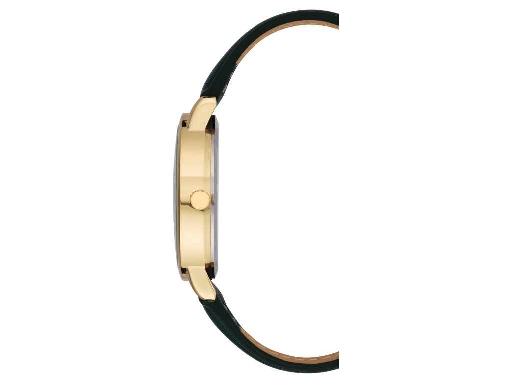 Dámské hodinky s netradičním, třpytivým číselníkem v odstínech zlaté a smaragdově zelené. Číselník má zlaté čárkové indexy, které dokonale doplňují třpytivý vzhled. Řemínek mají hodinky z tmavě zelené koženky.Doplňkové parametry