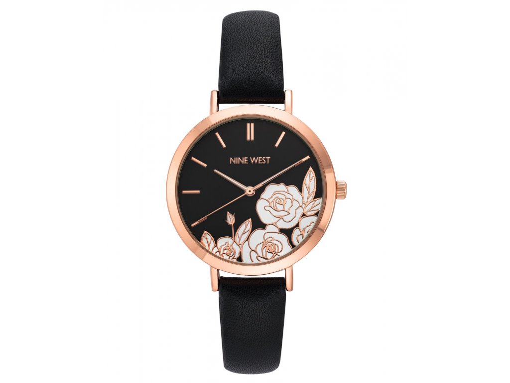 Dámské hodinky v netradičním, černém zpracování zaujmou svým květinovým číselníkem. Černý číselník má růžově zlaté čárkové indexy, které dokonale doplní květinový motiv. Příjemným bonusem je úzký černý řemínek z veganské kůže.Doplňkové parametry