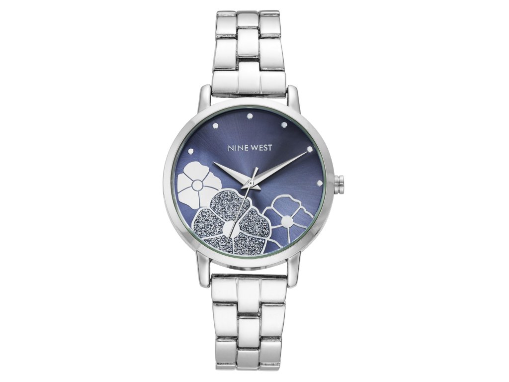 Dámské stříbrné hodinky s nápaditým číselníkem s květinovým motivem. Modro šedý číselník má drobné stříbrné tečky namísto klasických čárkových indexů a číslic a nechá tak naplno vyniknout právě květinovému motivu.Doplňkové parametry