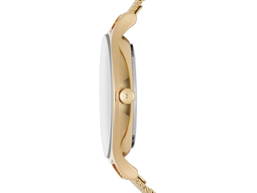 Model SKW2150 je vybaven zlatým ocelovým tahem, kulatým pouzdrem ve zlatém tónu a číselníkem ve stříbrném provedení o průměru 30 mm. Jemně zdobený číselník a subtilní proporce podtrhují ženskost a lehkost celého designu. Celek chrání minerální sklo a pohání spolehlivý strojek Quartz.