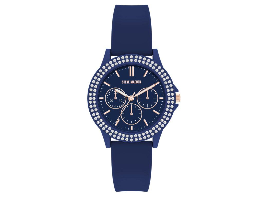 Dámské hodinky Steve Madden v sobě spojují svěží barvy, moderní styl a šperkový třpyt. Celomodré provedení působí výrazně a energicky, zatímco krystaly na pouzdře dodávají modelu elegantní a ženský akcent.
