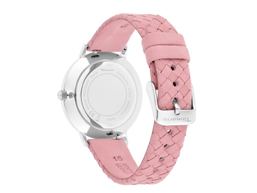 Dámské hodinky Tamaris s originálním pleteným koženým řemínkem v trendy, růžové barvě. Hodinky mají stříbrný číselník s kontrastními indexy v růžovo-zlaté barvě. Číselník o průměru 36 mm je chráněn odolným minerálním sklíčkem. Kožený řemínek je jednoduše nastavitelný a přizpůsobí se tak každému zápěstí.Doplňkové parametry