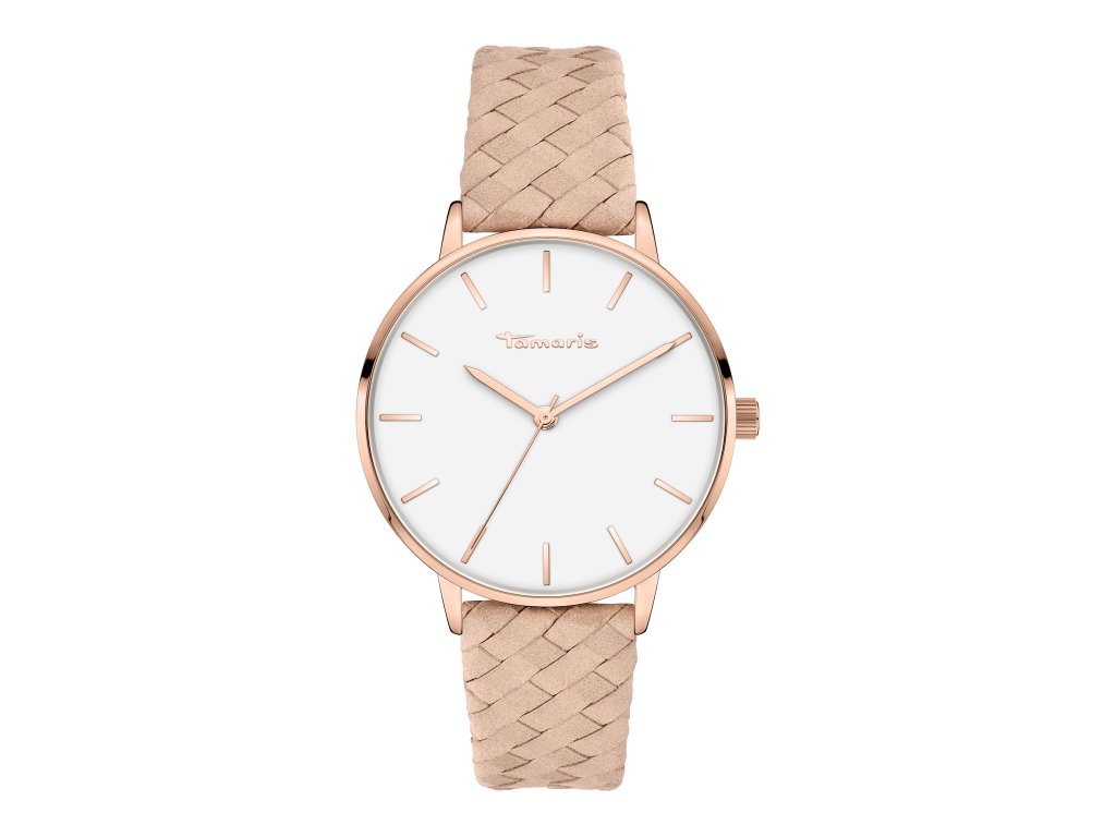 Dámské hodinky Tamaris s originálním pleteným koženým řemínkem v trendy, světle béžové barvě. Růžovo-zlatý číselník o průměru 36 mm má indexy v podobě čárek a je chráněn odolným minerálním sklíčkem. Zkrátka ideální trendy ženský doplněk. Kožený řemínek je jednoduše nastavitelný a přizpůsobí se tak každému zápěstí.Doplňkové parametry
