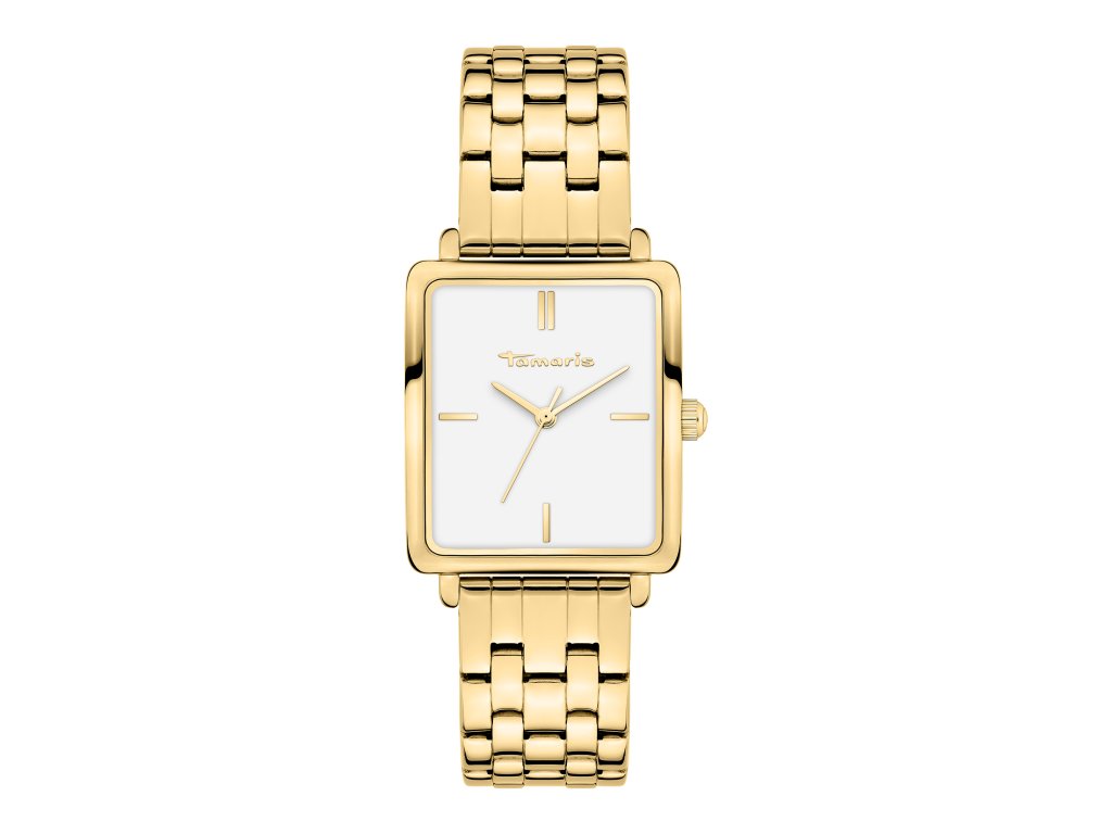 Trendy dámské zlaté hodinky Tamaris s ne tak obvyklým hranatým číselníkem o rozměrech 30 x 26 mm zaujmou svým elegantním a ženským provedením. Číselník se zlatými detaily je chráněn odolným minerálním sklíčkem. Ideální moderní hodinky, které se hodí jak do práce, tak k volnočasovým aktivitám.Doplňkové parametry
