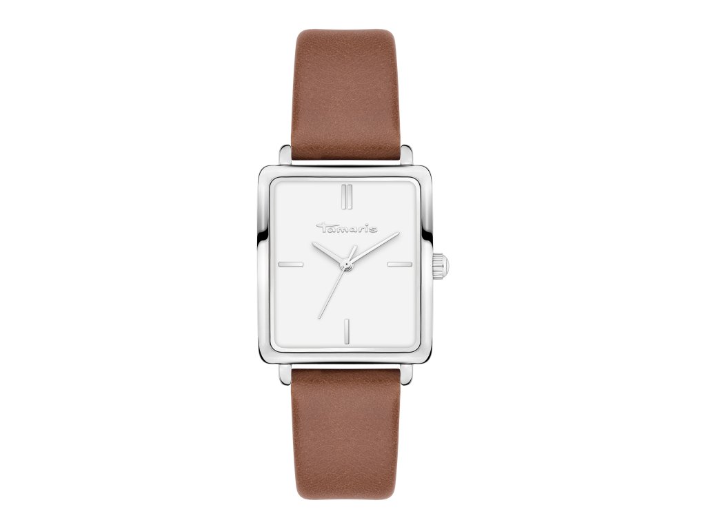 Dámské hodinky Tamaris se stříbrným hranatým číselníkem o velikosti 30 x 26 mm. Bílý číselník se stříbrnými detaily je chráněn odolným minerálním sklíčkem. Nastavitelný kožený řemínek v trendy hnědé barvě zajistí, že vám hodinky budou příjemně sedět na zápěstí. Ideální kousek, který je elegantní a praktický zároveň.Doplňkové parametry