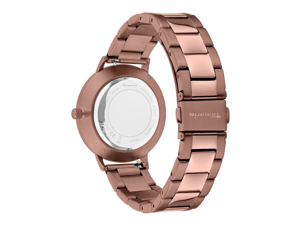 Dámské minimalistické hodinky Tamaris v netradičním, jednobarevném provedení. Tyto elegantní zlato hnědé hodinky mají číselník o průměru 36 mm se zlatými indexy v podobě čárek. Číselník je před oděrkami chráněn odolným minerálním sklíčem. Kovový řemínek je velmi jednoduše nastavitelný a máte tak jistotu, že vám sedne přesně podle vašich představ. Tento monochromatický kousek je nadčasovým doplňkem, který se hodí jak k elegantnímu, tak sportovnímu outfitu.Doplňkové parametry