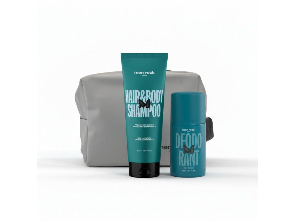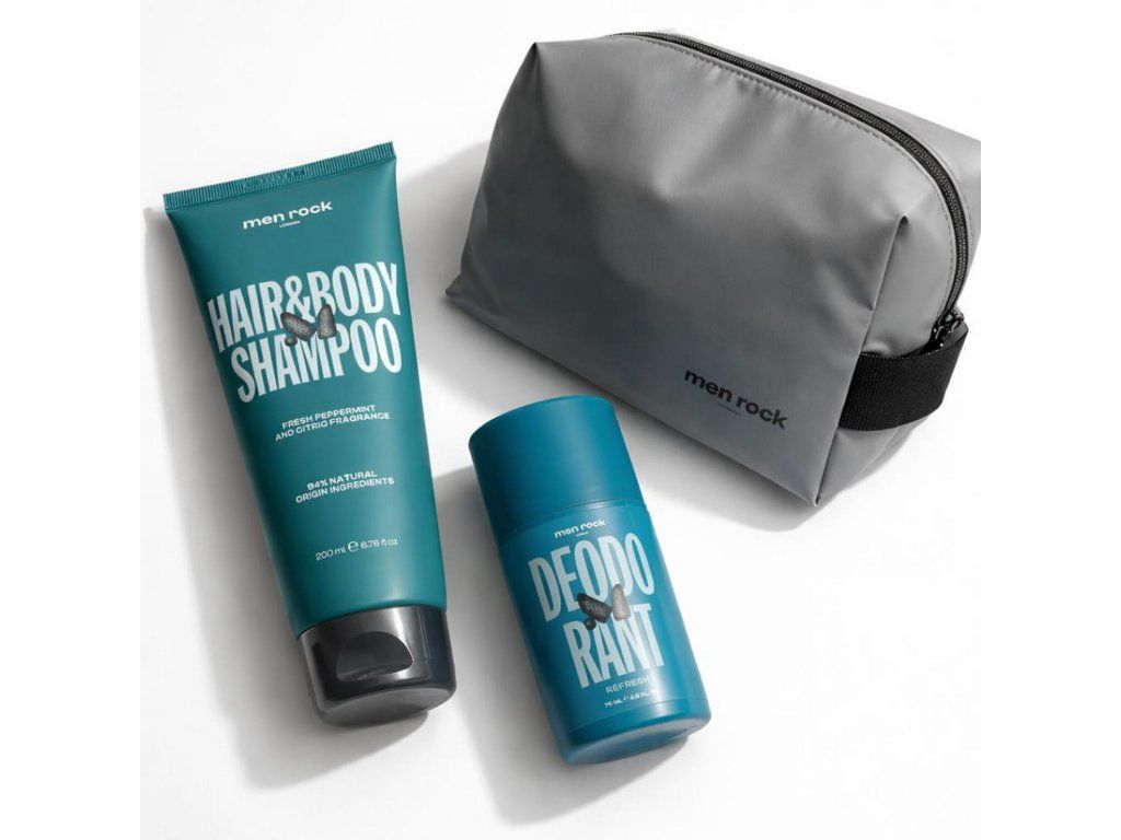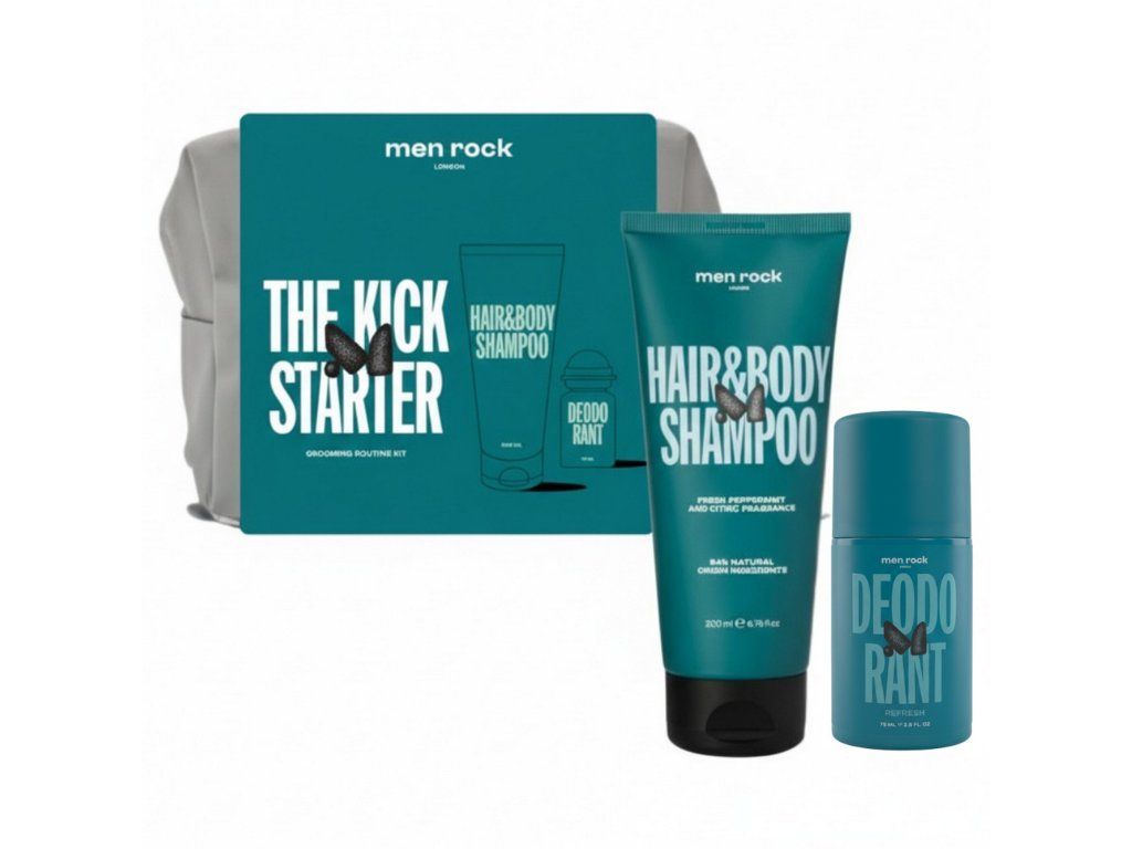 Men Rock The Kick Starter Kit je pánská kosmetická sada pro každodenní péči o tělo, vlasy a svěžest po celý den. Praktická kombinace šamponu, deodorantu a cestovní tašky nabízí jednoduché řešení pro moderního muže.