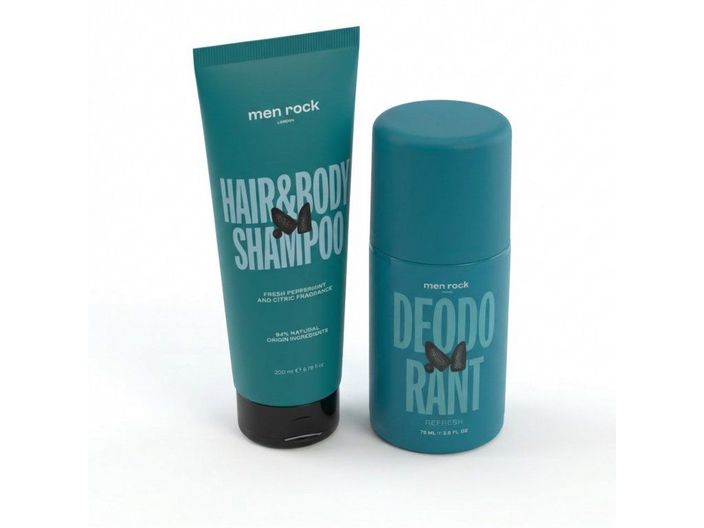 Men Rock Hair & Body Shampoo (200 ml) – šampon na vlasy a tělo, který jemně odstraňuje nečistoty a zanechává pokožku i vlasy čisté, hydratované a svěží.