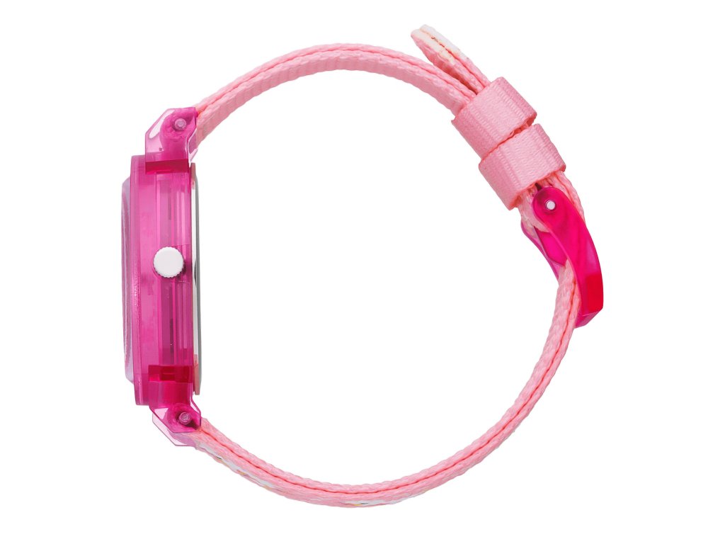 Velikost pouzdra 28 mm je ideální pro menší dětská zápěstí. Pouzdro z odolného plastu a růžový nylonový pásek s motivem jednorožce tvoří hravý a zároveň praktický celek.