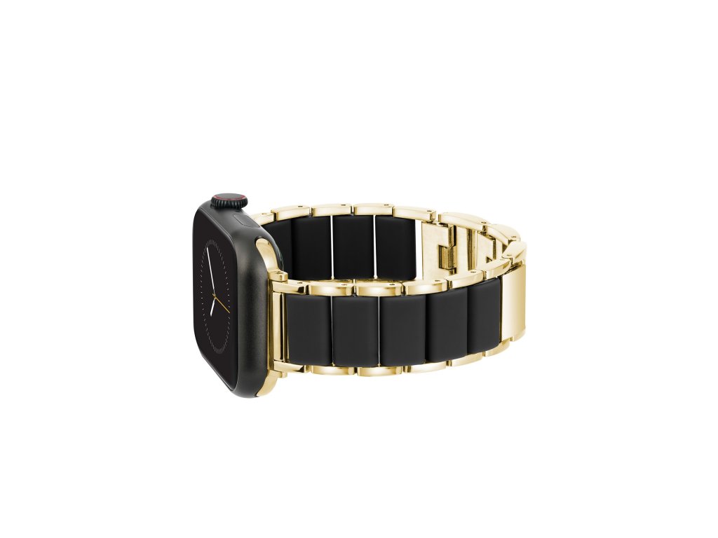 Řemínek je složen z ocelových prvků zlaté barvy po obvodu a středových článků z černého silikonu. Tato barevná kombinace je velmi stylová a nadčasová. Díky svému materiálu se náramek velmi příjemně nosí po celý den.