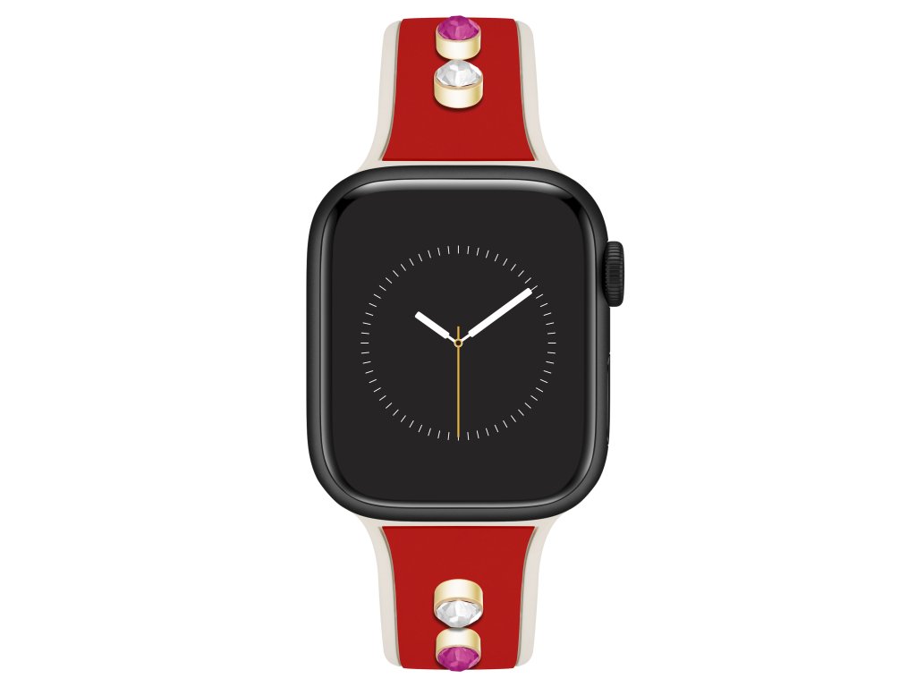 The Anne Klein strap with crystals transforms your Apple Watch into an elegant fashion accessory. At first glance, it impresses with a stylish combination of cream and red colours, complemented by six colourful crystal embellishments.