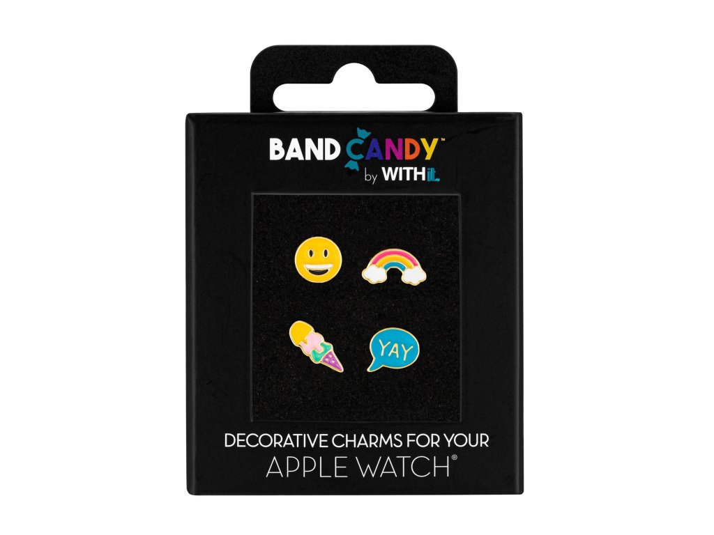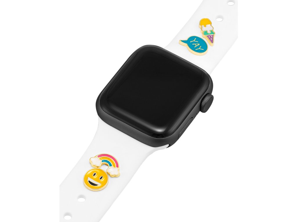 Liven up your Apple Watch strap with a set of four original decorations from the brand WITHit. The cheerful summer motifs - smiley face, rainbow, ice cream and Yay in the Band Candy Happy Charm set - will give your watch a distinctive style.