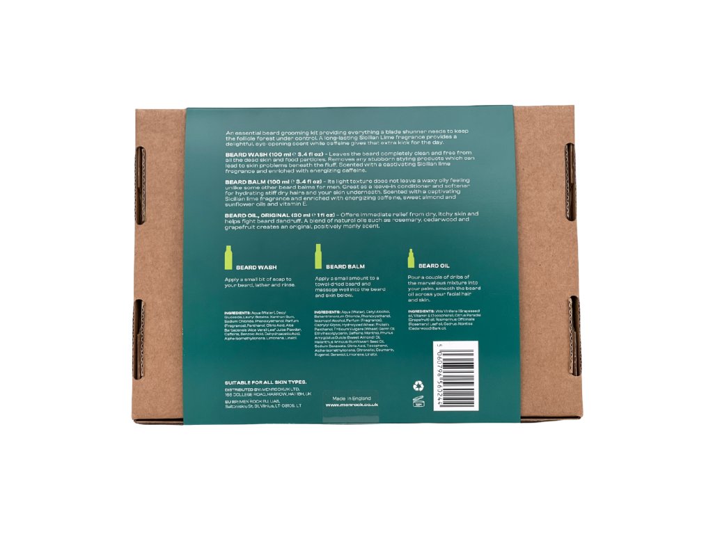 A basic beard care kit that provides everything a man needs to keep his beard under control. The long-lasting scent of Sicilian lime provides a wonderful, fresh aroma, while caffeine gives an extra boost for the day. Contains: Beard Wash Emulsion (100 ml): leaves beard completely clean and free of all dead skin and food particles. Removes any hardened styling products that can lead to problems with the skin under the beard. With a captivating aroma of Sicilian lime and enriched with energizing caffeine. Apply a small amount of emulsion to the beard, lather and rinse. Beard Balm (100 ml): its light texture does not leave a waxy, greasy feeling unlike some other beard balms for men. Great as a rinse-free conditioner and emollient to moisturize stiff, dry beards and your skin underneath. With a captivating aroma of Sicilian lime and enriched with energizing caffeine, sweet almond and sunflower oil and vitamin E. Apply a small amount to a towel-dried beard and massage well into the beard and skin underneath. Beard Oil (30 ml): provides immediate relief from dry and itchy skin and helps fight dandruff. A blend of natural oils such as rosemary, cedarwood and grapefruit create an original masculine scent. Pour a few drops of this amazing blend into your palms and spread the beard oil over your beard and facial skin.Additional parameters