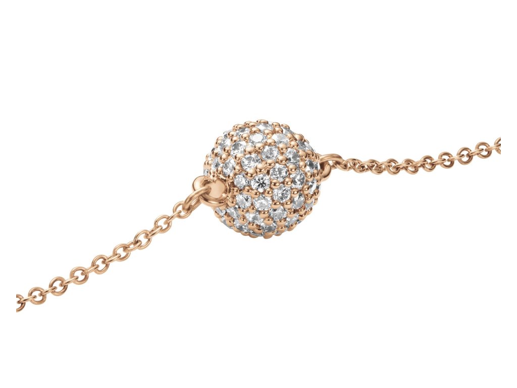 The wrist bracelet is also a popular jewellery for women who prefer moderation and minimalism. The Pavé Crystal bracelet consists of a delicate chain with a small sphere-shaped pendant set with small cubic zirconia crystals.