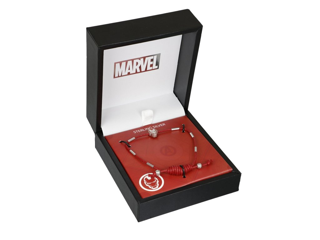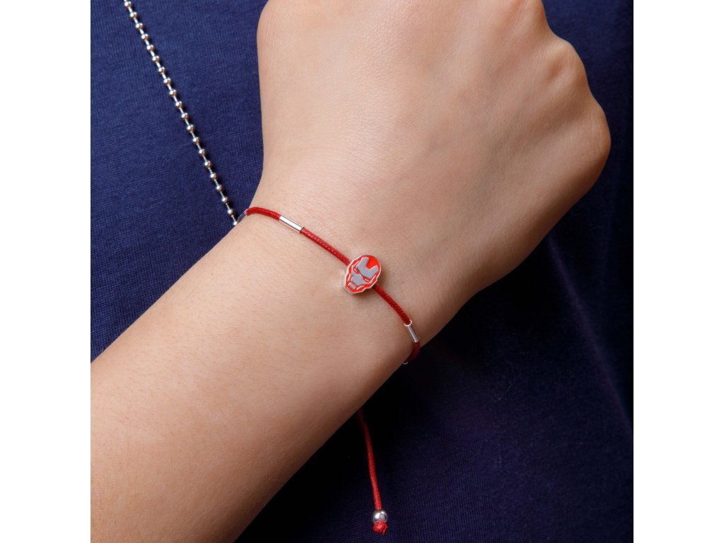 The bracelet is made of high quality red fabric and decorated with fine silver decorations that give the bracelet an elegant look and complete the overall design. Silver is 925/1000 purity, which guarantees high quality. The main element of the bracelet is the symbol of the superhero Iron Man, whose red colour is made of enamel.
