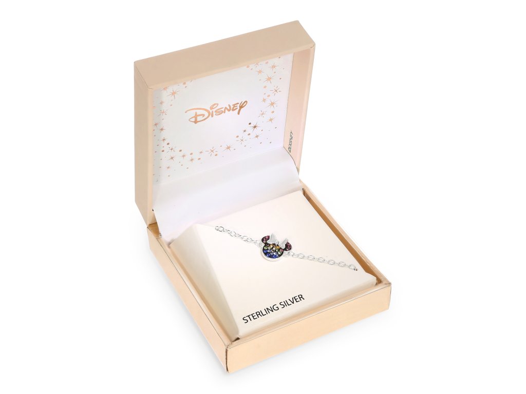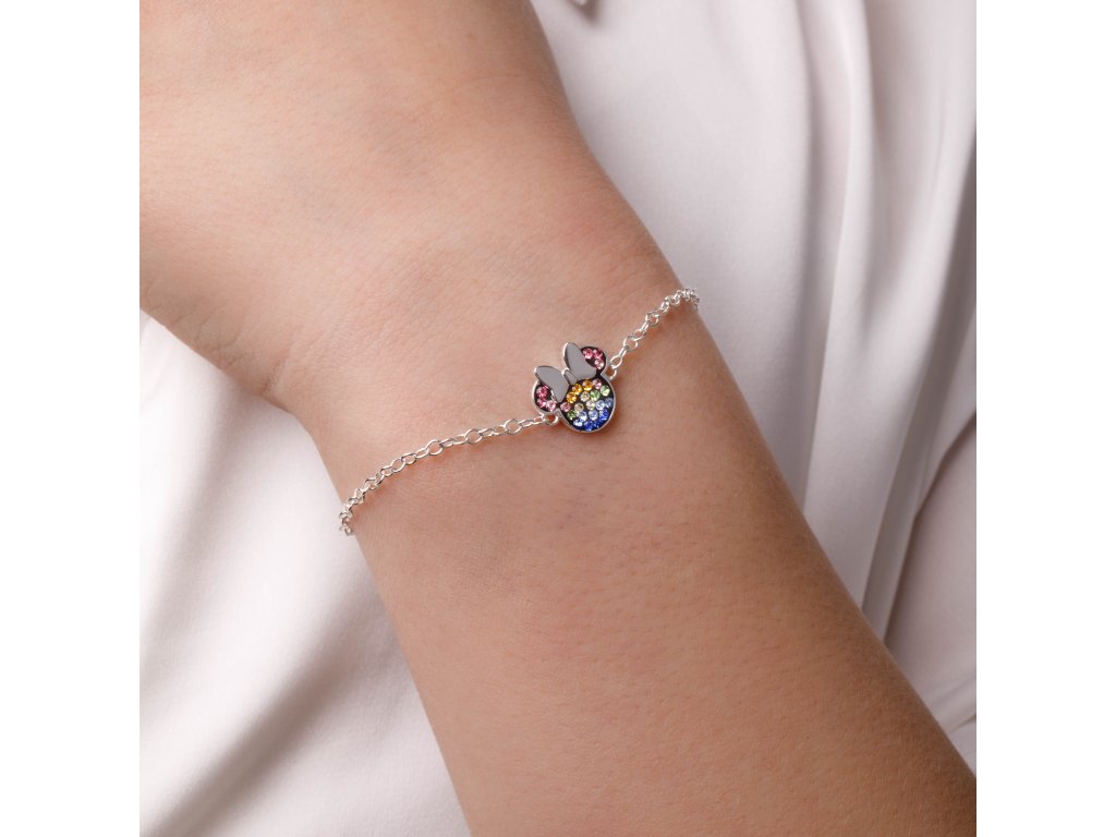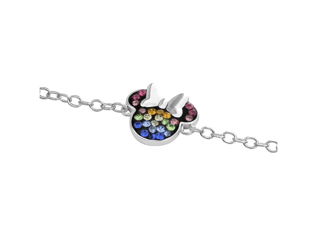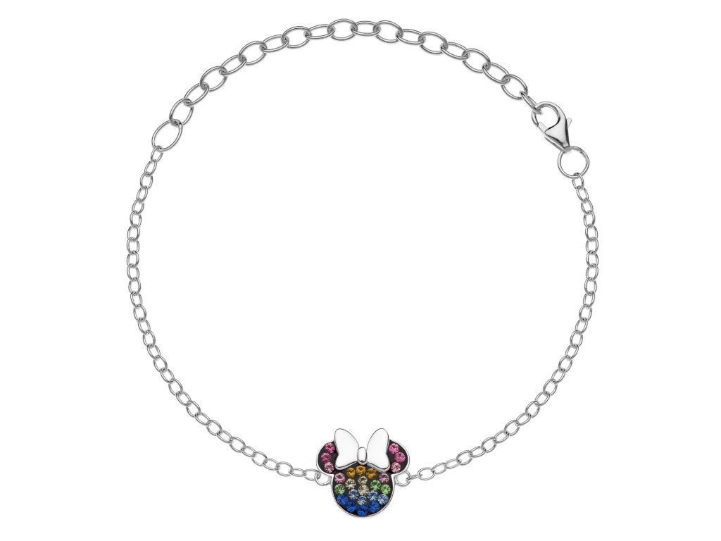 A cheerful bracelet for little girls, an ideal gift for Disney fairy tale lovers. Silver bracelet with a pendant in the shape of the famous Minnie Mouse character is covered with colored crystals, which make it a decoration of every little princess' jewelry box. It is made of silver 925/1000.Additional parameters