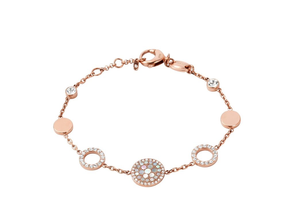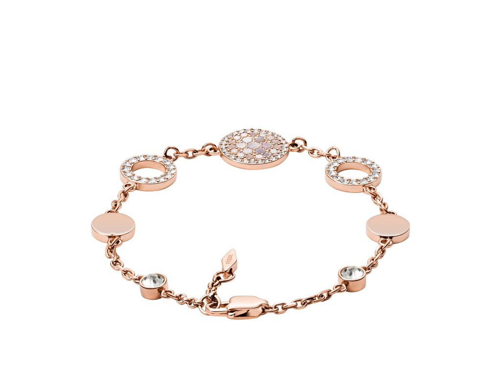 The epitome of elegance, glamour and jewellery heritage, this ladies' bracelet from Fossil is in a soft rose gold tone. Its design references the classic look of a jewel, but Fossil 's craftsmanship and style make it a timeless piece of jewellery.
