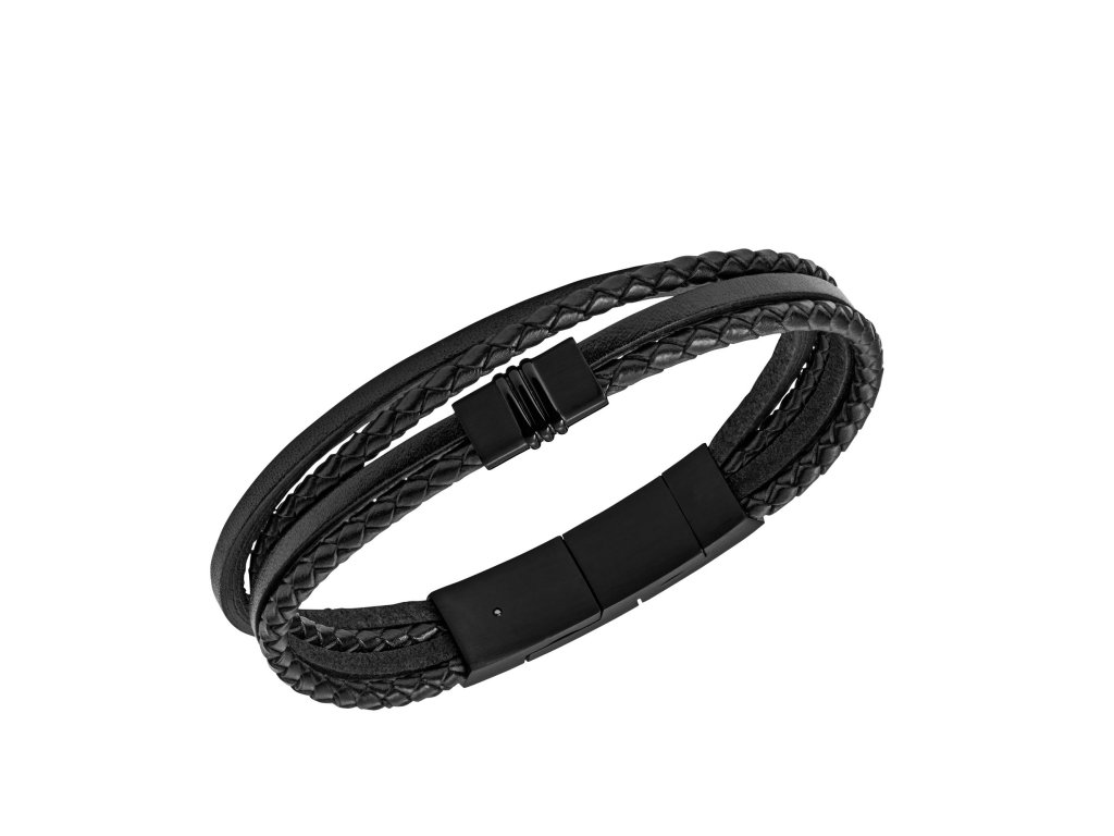 The bracelet consists of a total of 3 differently designed slim straps that meet in a black steel clasp. Steel adds strength and masculinity to the jewellery, black leather adds elegance. Thanks to its understated design, the bracelet is perfect for more formal outfits as well as for informal social events and evening parties.