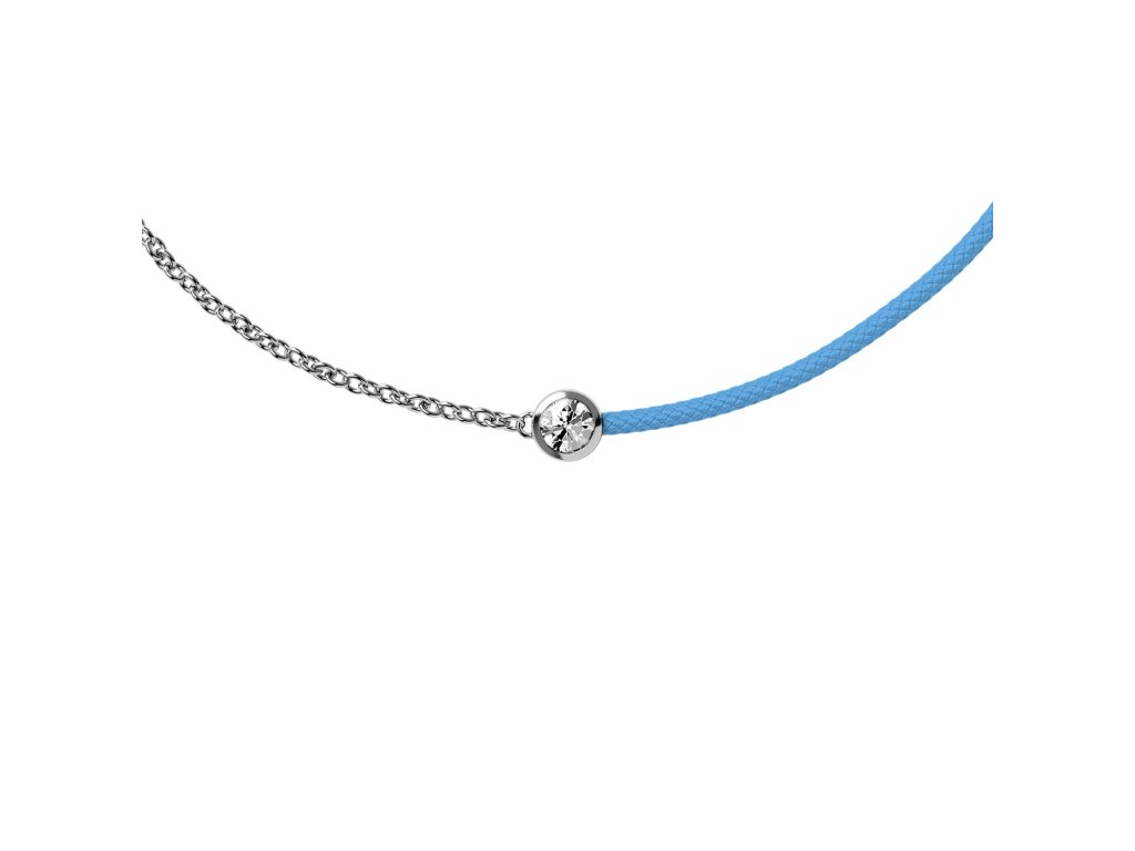 In the bracelet, a silver chain meets a delicate cotton cord in a blue tone. The whole looks balanced and elegant, making the bracelet suitable for wearing on its own or for subtle layering with other bracelets, chains, or watches.