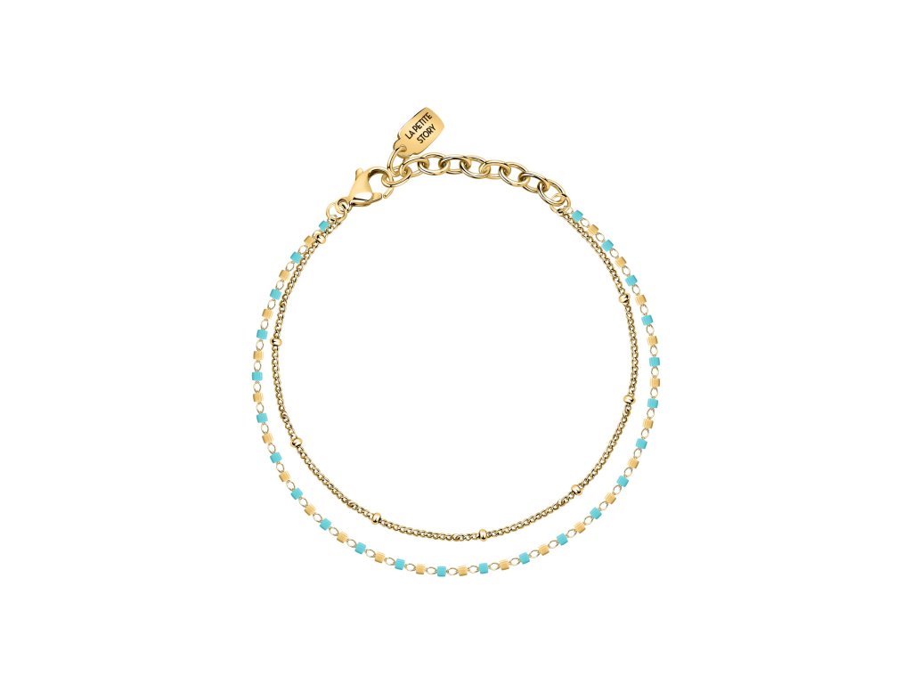 Decorate your wrist with a double bracelet from the Italian brand La Petite Story, which stands out for its delicacy and attractive colours. This ladies bracelet consists of two pieces, one of which is decorated with blue and gold plated beads. The ideal choice for women who prefer understated yet elegant jewellery.