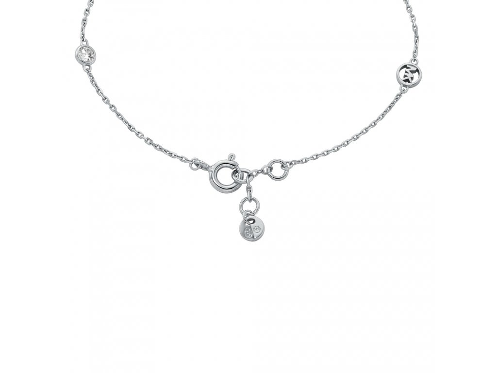 The delicate bracelet is made of 925 sterling silver and decorated with several sparkling cubic zirconia crystals and a subtle MK logo. You can adjust its length. The weight of the jewel is 2g.