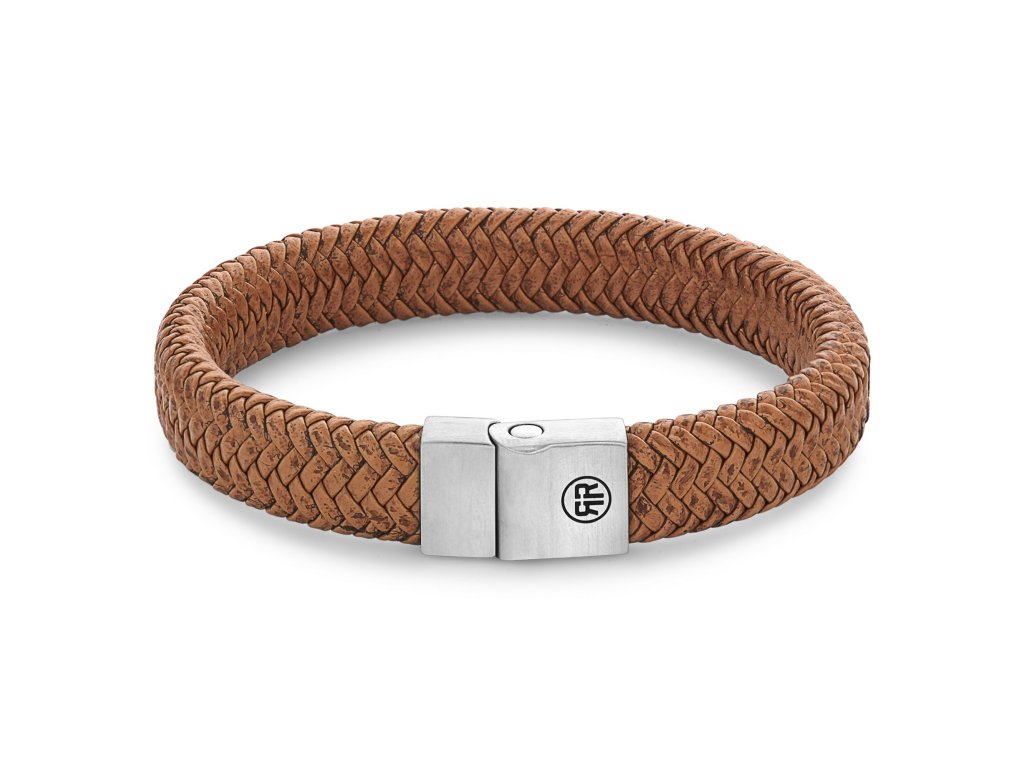 The base is a brown leather strap with a precise herringbone weave, which adds structure and visual depth to the bracelet. The whole is complemented by a decorative steel clasp, which ensures a secure fastening and emphasizes the modern identity of the Rebel & Rose brand. Size L (21.5 cm) is ideal for larger men's wrists and offers comfort for all-day wear.