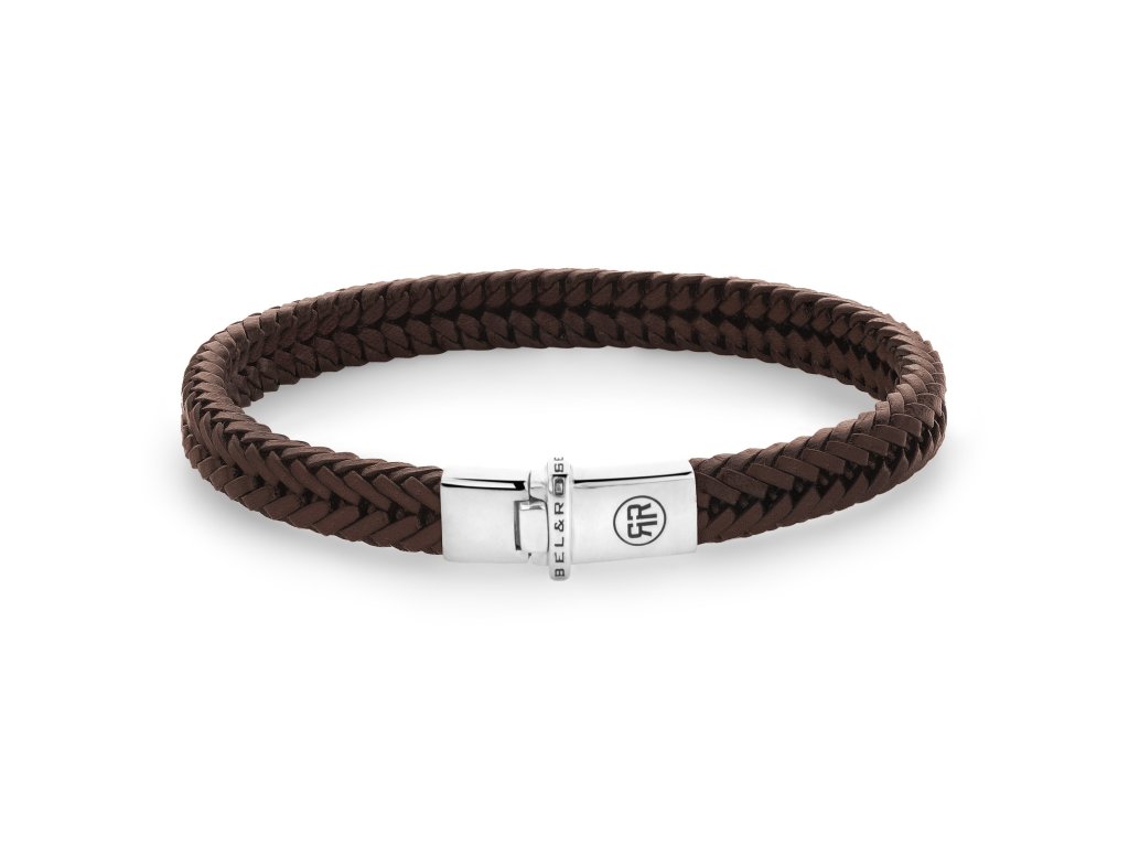 The base is a brown leather strap with a firm and precise weave, ensuring comfort during wear and long durability. The whole is complemented by a decorative silver clasp, which offers secure fastening and at the same time emphasizes the iconic identity of the Rebel & Rose brand. Size M (19 cm) is ideal for a standard men's wrist and allows for comfortable everyday wear.