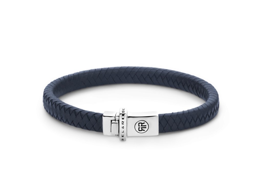 Rebel & Rose men's leather bracelet Small Braided Navy