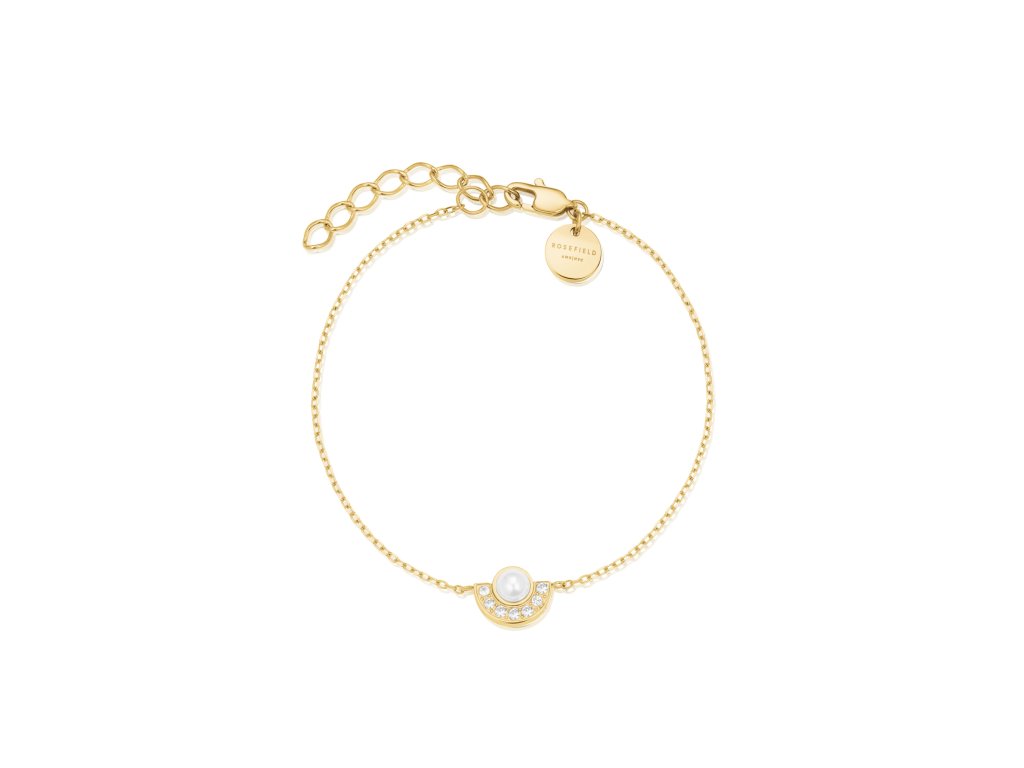 Delicate and elegant – the women's bracelet from the Rosefield brand enchants with a harmonious combination of sparkling crystals and a central pearl. A delicate chain made of gold-plated stainless steel appears light and feminine, while the decorative element attracts attention with its balanced and sophisticated design.