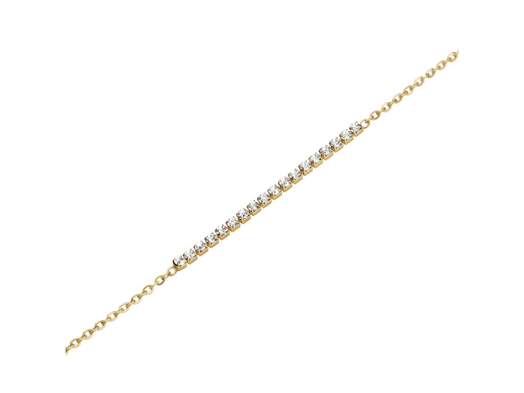 The design of the bracelet is a combination of a delicate chain with tiny loops and a part set with clear shining crystals that give it a touch of elegance.