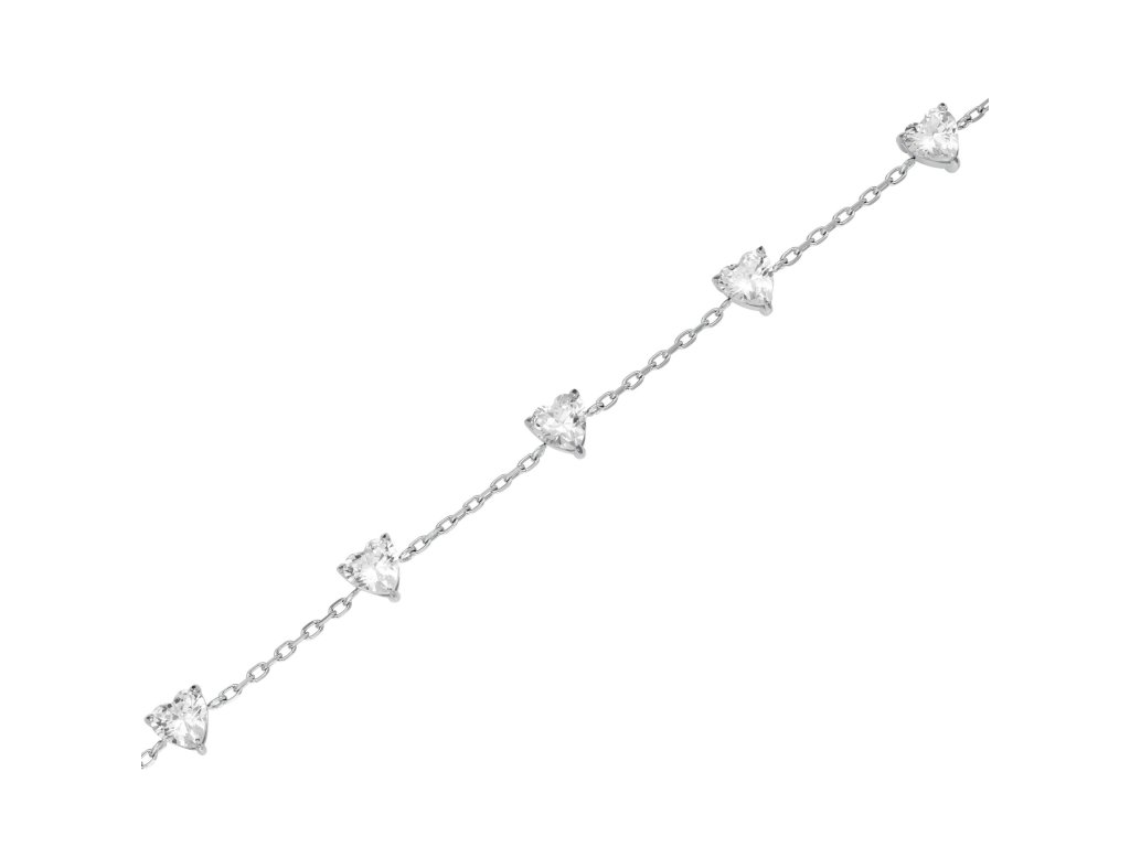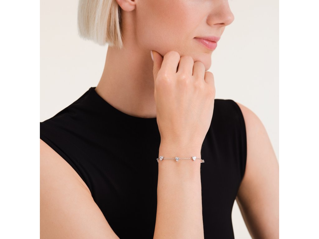 Row Hearts Bracelet enchants with delicate clear crystals in the shape of small hearts, creating an elegant and romantic detail.
