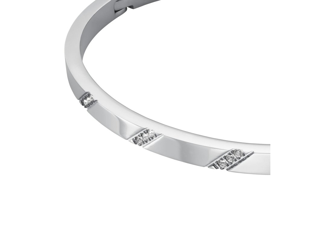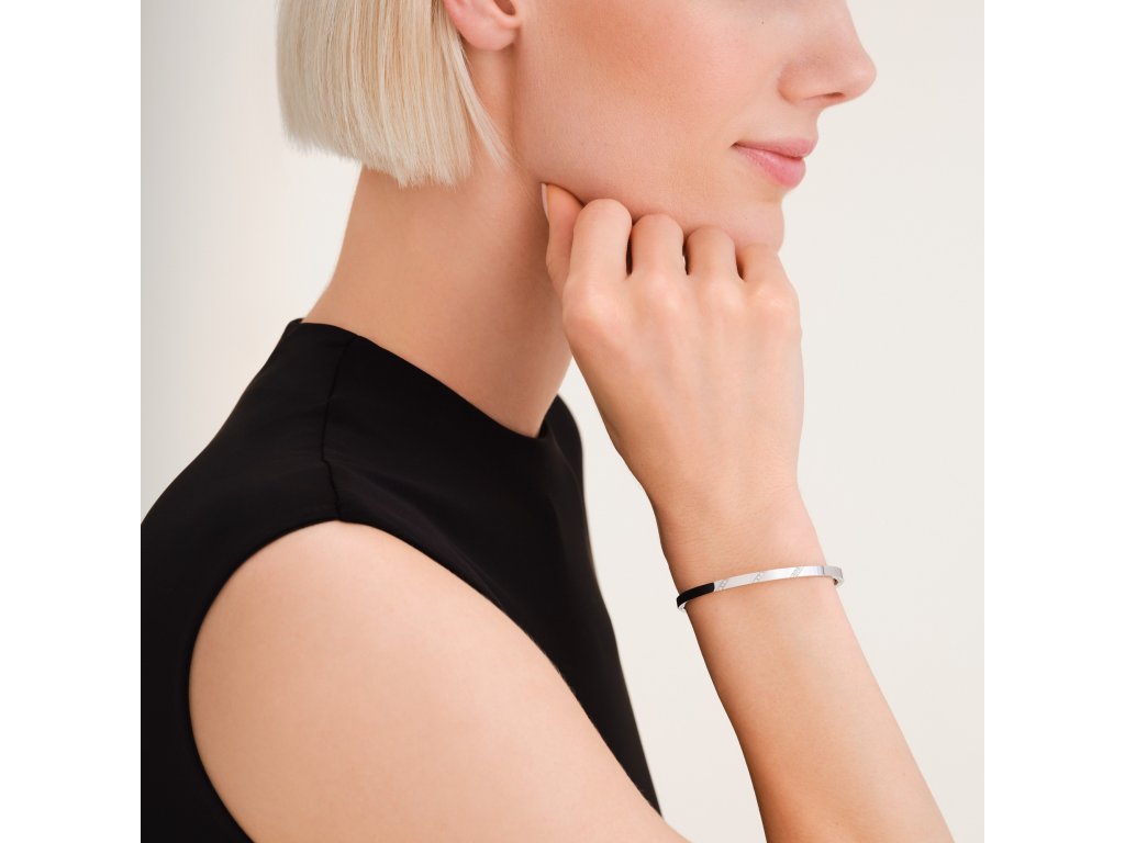 The bracelet has an oval shape measuring 6 × 5 cm and is made of stainless steel, which offers long-lasting shine and high durability. An excellent choice for women looking for original solid jewellery with delicate embellishments and a modern touch.
