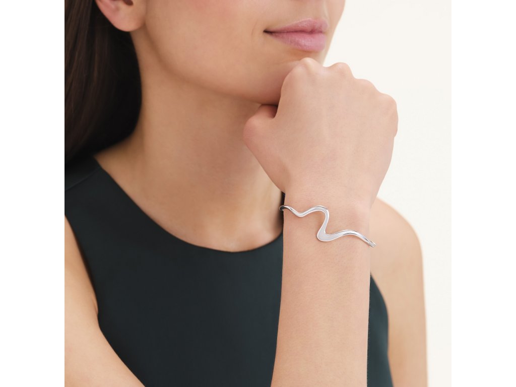Rhodium-plated stainless steel gives the bracelet a clean, sophisticated look while ensuring durability and longevity. The glossy finish highlights the smooth curves and emphasizes the modern character of this model.