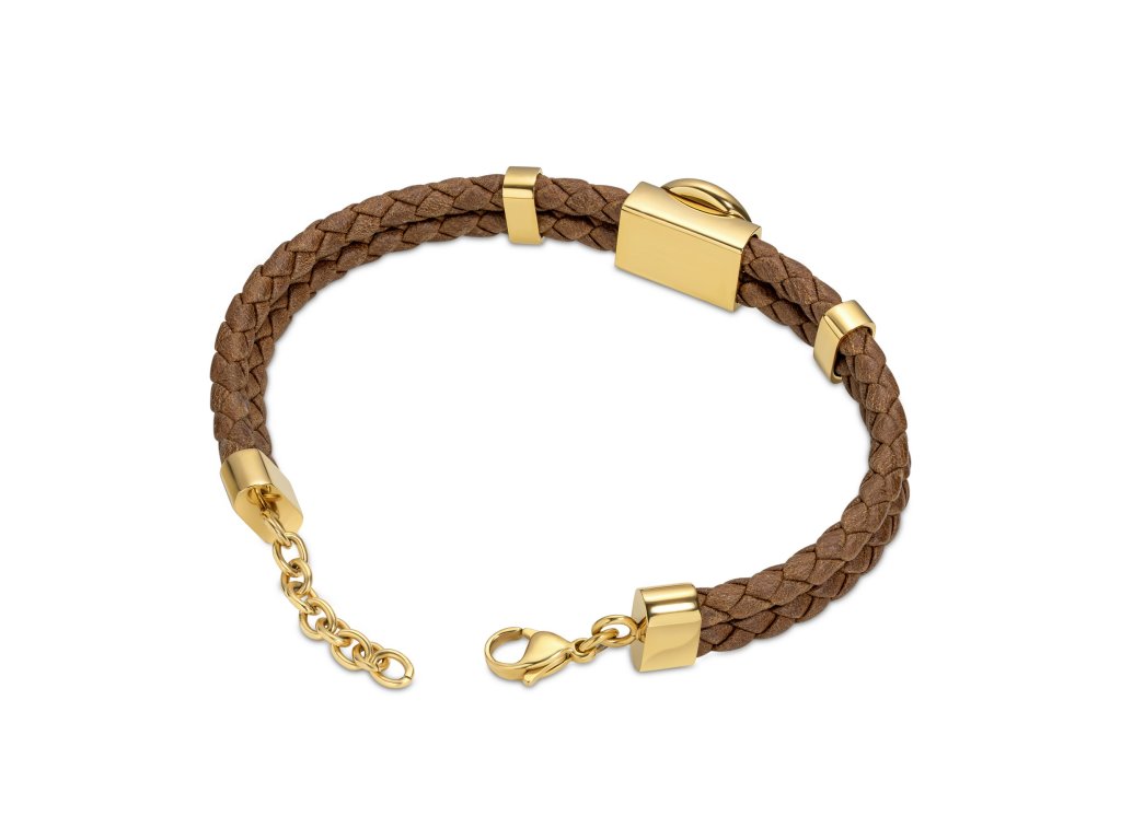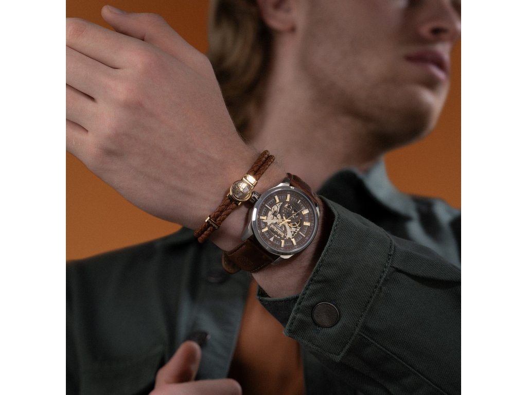 Brown men's bracelet from the Timberland workshop combines a natural look with an elegant accent in the form of a gold metal clasp. Double leather wrap and a distinctive brand logo create an accessory that will stand out during everyday wear, as well as in combination with watches or other jewelry.