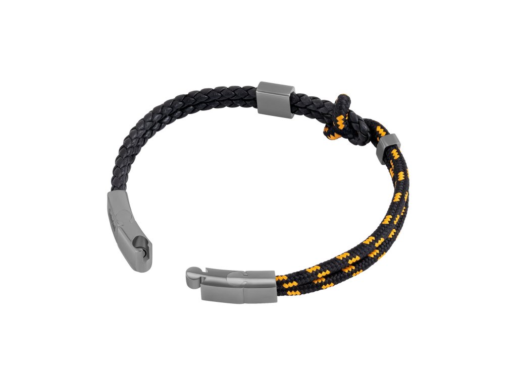 Men's bracelet from the Timberland brand combines urban style and outdoor elements. Black leather, stainless steel with black PVD coating, and black-orange nylon create a combination that is durable, modern, and visually striking. The brand logo is also present here – as proof of quality and a stylish signature.