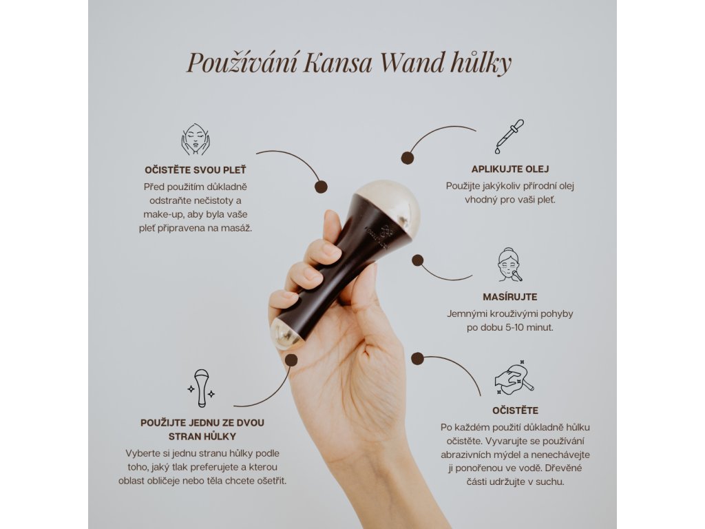 How to use Kansa Wand? Step 1: Apply your favourite natural oil to your skin. Step 2: Use one of the two ends of the wand with respect to the area of the body and the desired pressure. Step 3: Massage in gentle circular movements for 5-10 minutes. In this article you will find videos with precise massage tips.