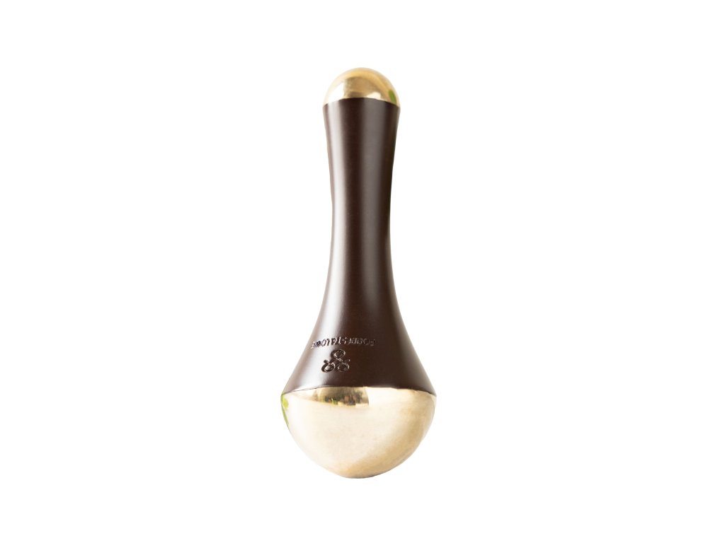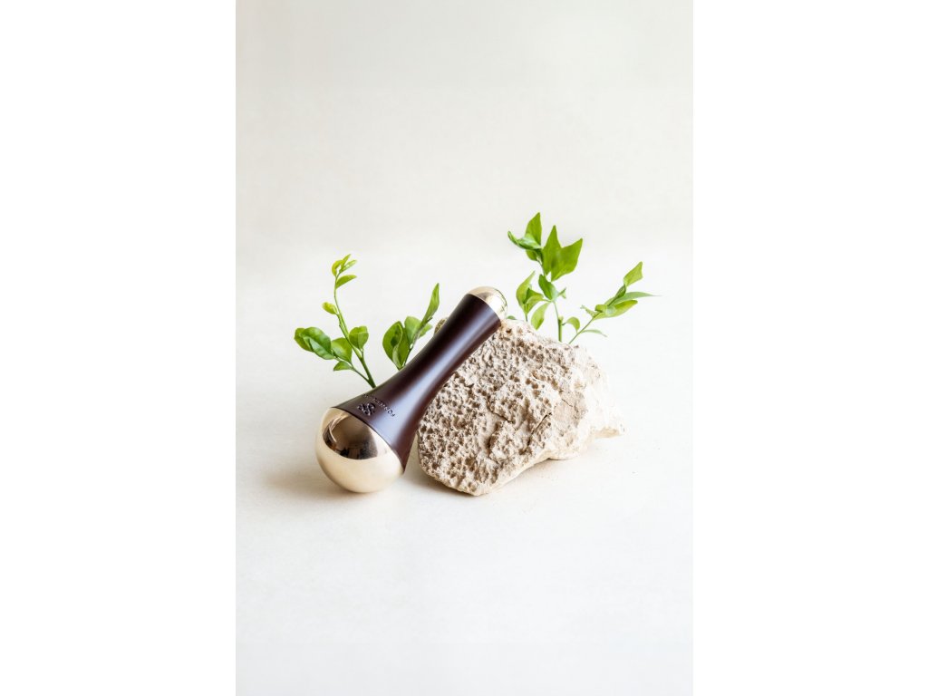 The wand is made of kansa, a copper-tin alloy that has been revered for centuries in Ayurveda for its healing properties. The wand with a modern design is sustainably produced by the German brand Forrest & Love in a traditional workshop in India.
