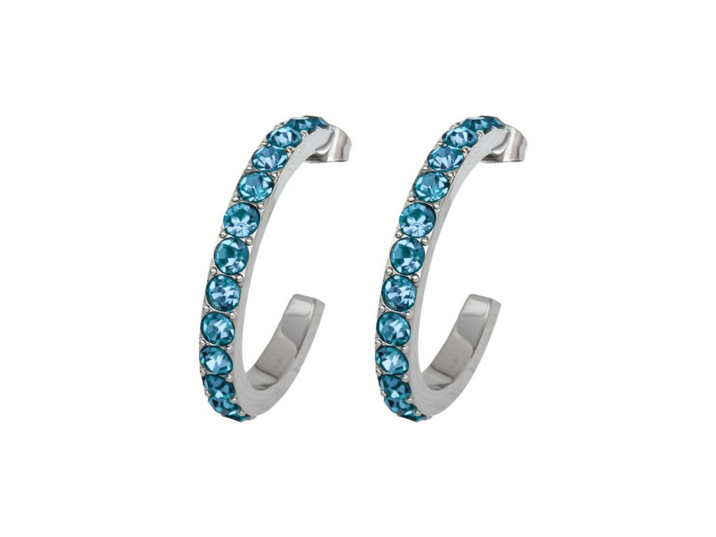 The earrings are made of high-quality stainless steel, which ensures durability and comfort when worn. Blue crystals add a radiant accent and depth to the jewelry. The practical stud clasp provides a secure and comfortable fit all day long.