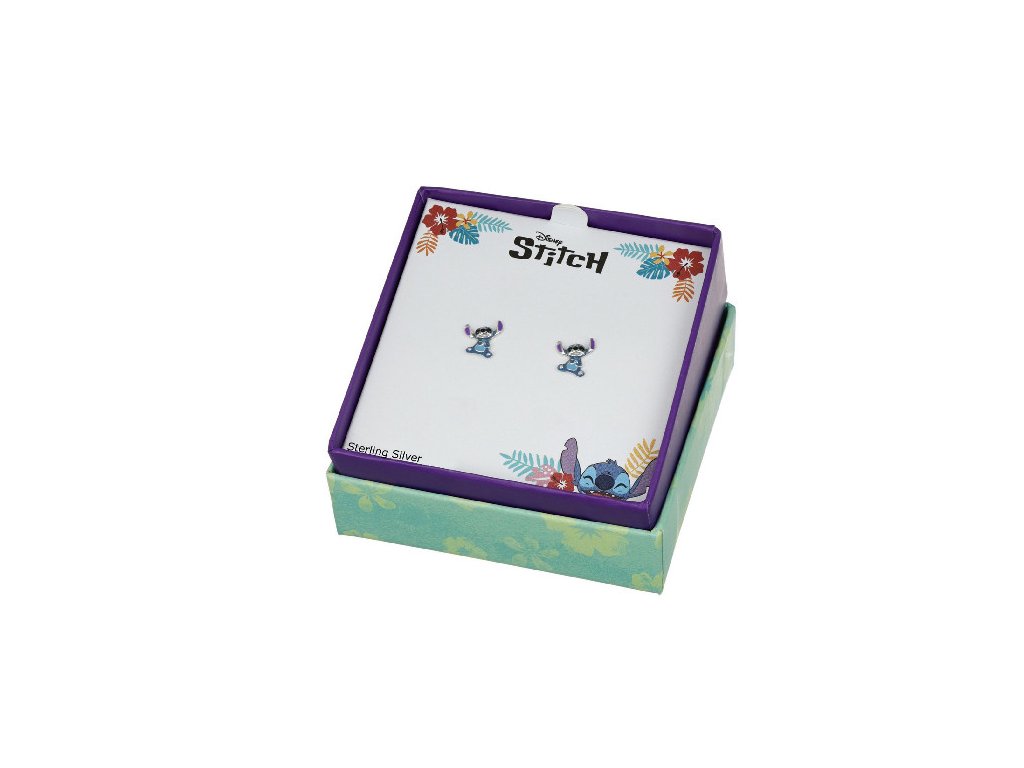 These original earrings with the figure of a smiling Stitch from Lilo & Stitch are made of sterling silver 925/1000 and decorated with coloured enamel.