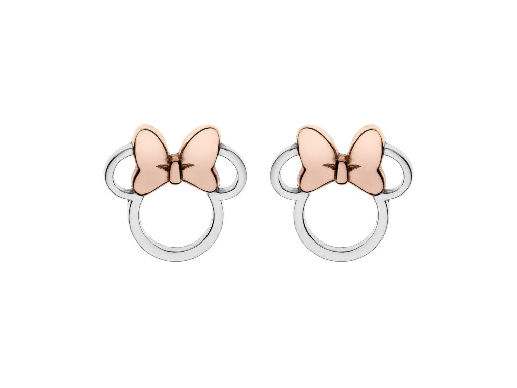 Earrings with the outline of the character Minnie Mouse from Disney are made of high quality sterling silver with a shiny finish. These stylish earrings are dominated by a rose gold plated bow. They fasten with a button, which ensures comfortable wearing and prevents loss of earrings. They come in a stylish box. The weight of the jewel is 1,8 g.