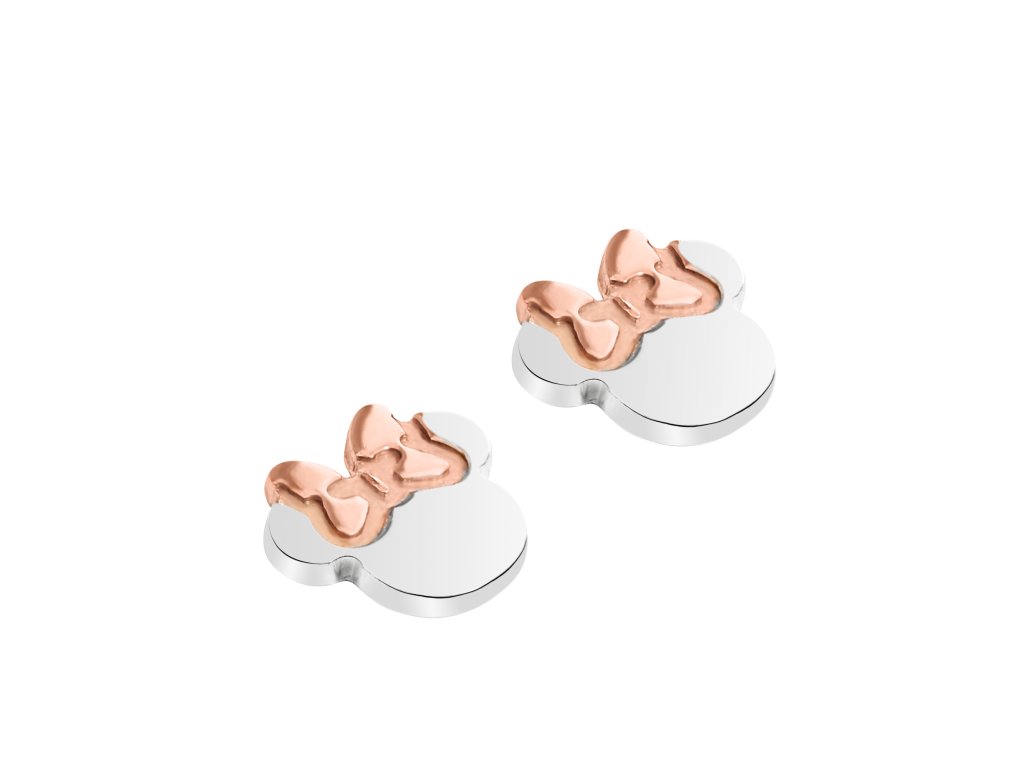 The earrings in the shape of the character Minnie Mouse from Disney are made of high quality sterling silver 925 with a shiny finish. The earrings are dominated by a rose gold gilded bow. These earrings are fastened with a button to ensure a comfortable fit and prevent earring loss. They come in a stylish box. The weight of the jewel is 1,8 g.