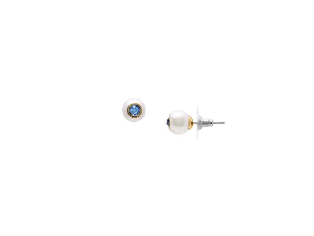 Women's stud earrings catch the eye at first glance with a blue crystal set in a pearl ball, which is decorated with gold-plated accents. It belongs to the Baubles collection full of playful, colourful and perfectly combinable jewellery.