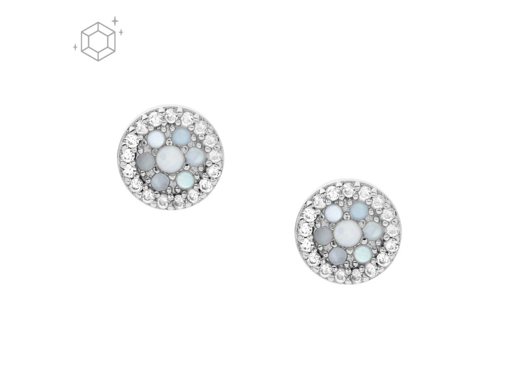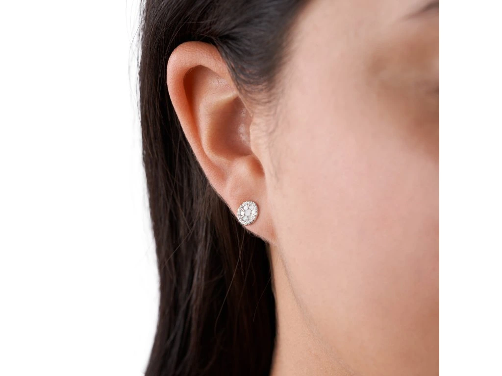 The earrings attract attention with their shining crystals set in a silver-tone circle. It looks very feminine and thanks to its design it is suitable for everyday wear. The earrings are made of 100% sterling silver 925/1000. The weight of the jewel is 1,31 g .