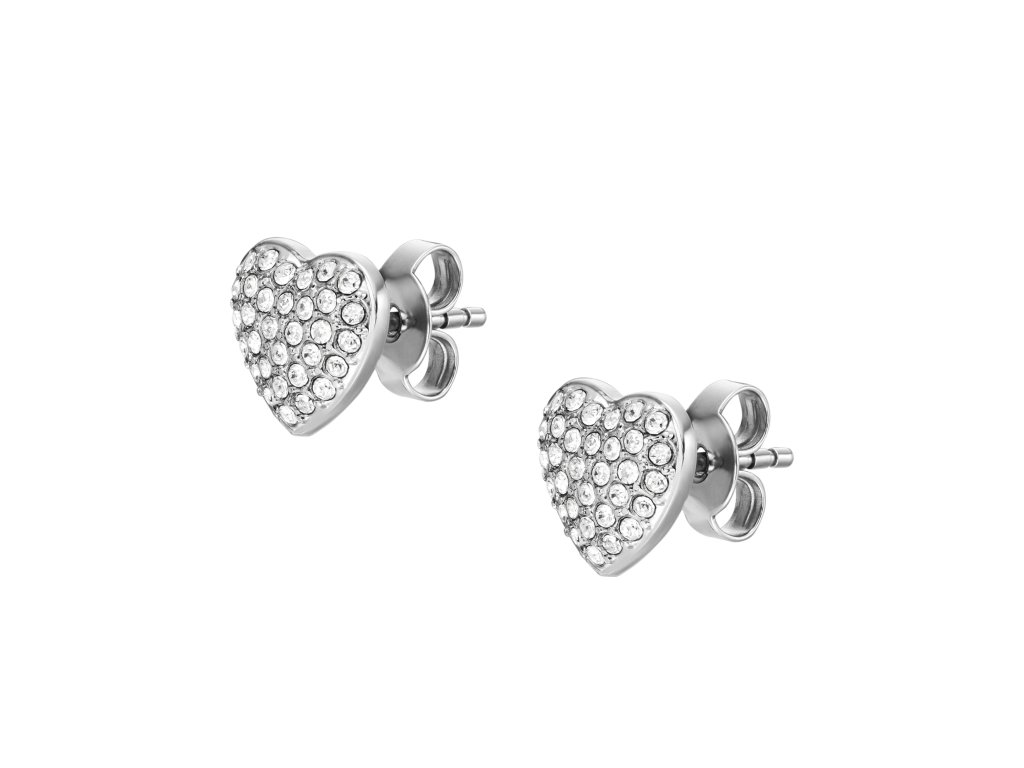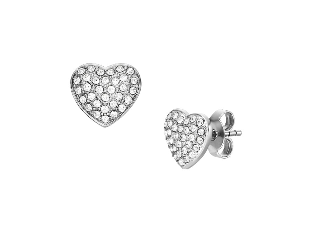 Women's Fossil Sadie Glitz Heart Earrings are made of high quality stainless steel and set with small shiny crystals.They fasten with a button.