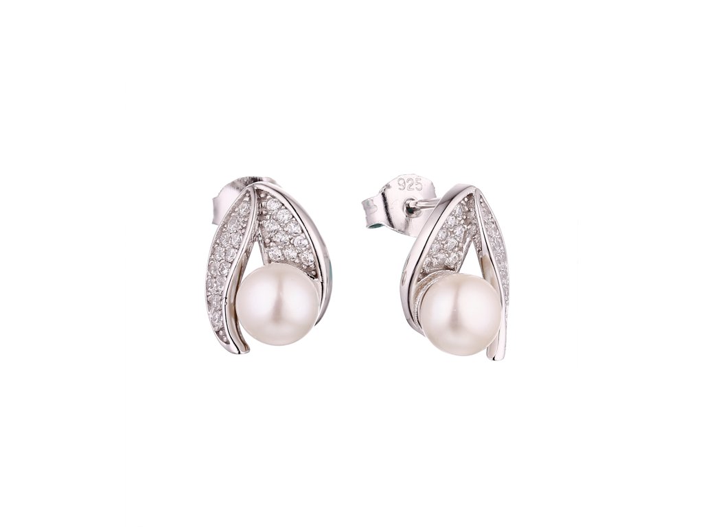 The earrings are made of 925/1000 sterling silver and finished with rhodium plating, which helps protect the material and maintain its long-term appearance. The dominant element is a genuine pearl with a diameter of 6 mm, complemented by clear cubic zirconia crystals. Thanks to their size of 1.2 × 0.9 cm, they are light, comfortable, and suitable for everyday wear. The weight of the jewelry is 2.8 g.