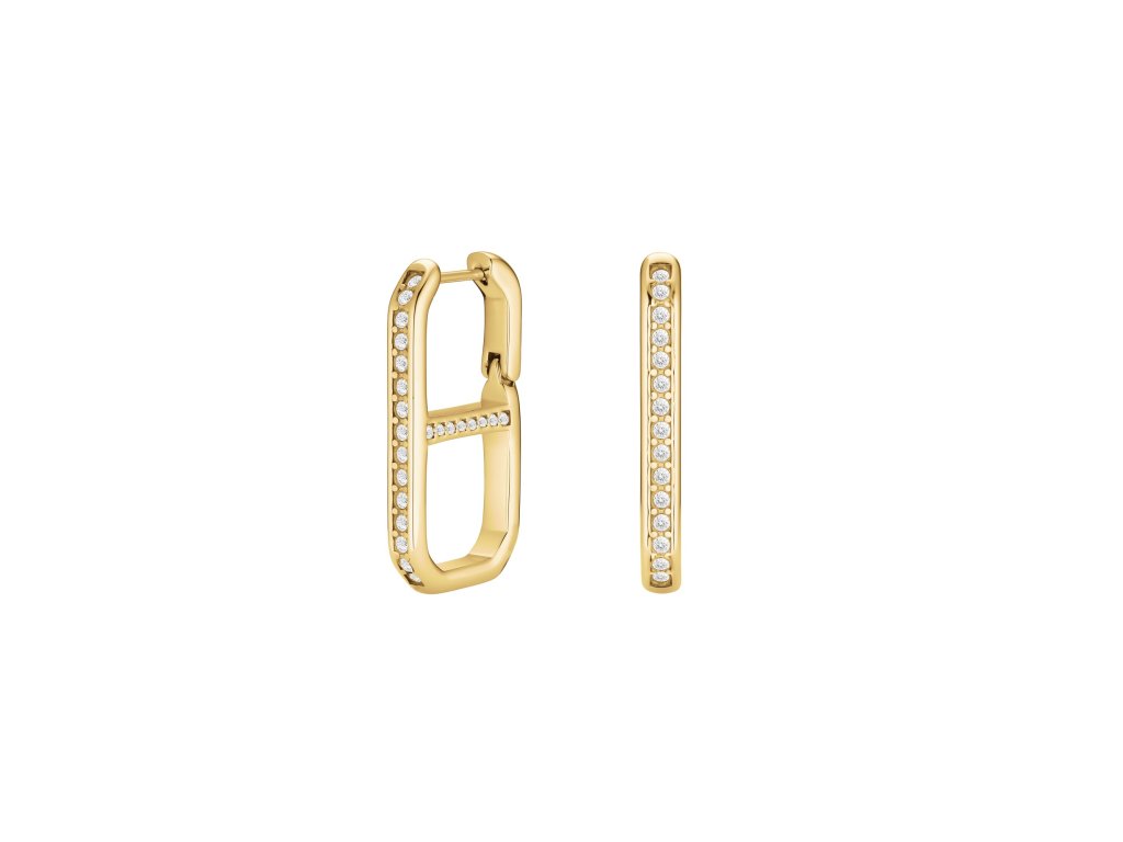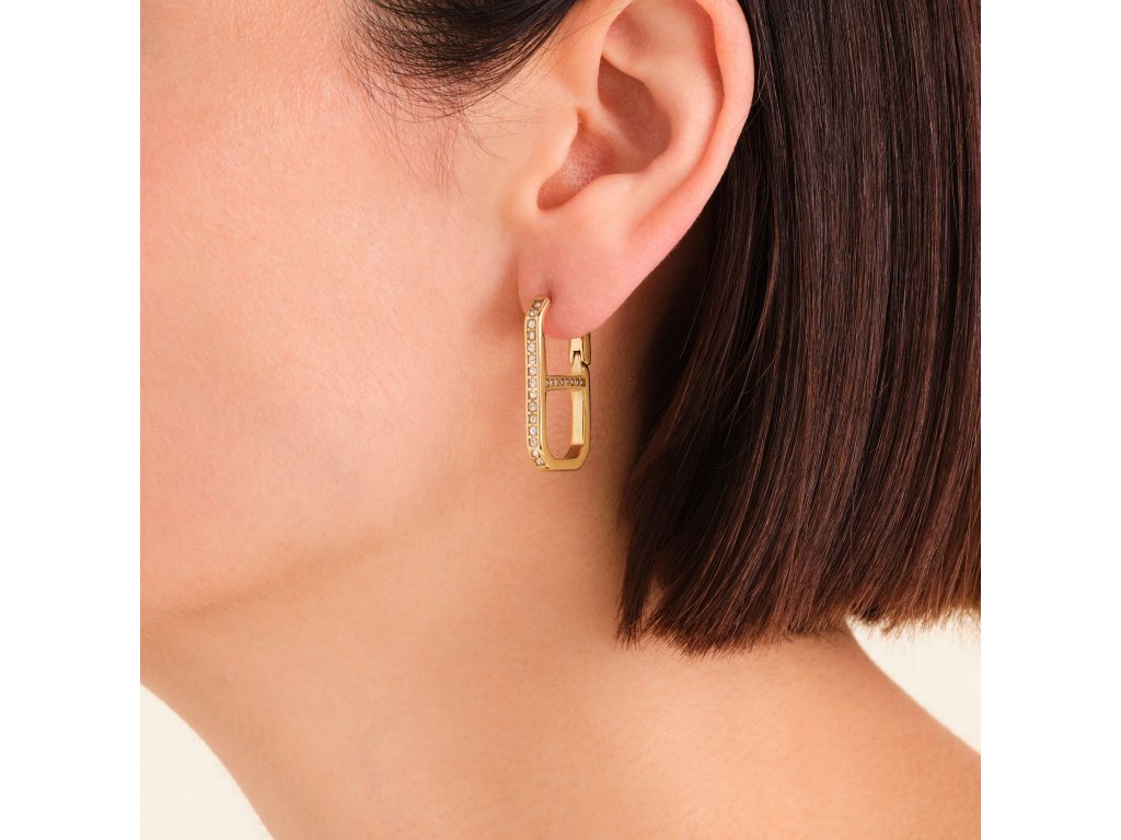 Crystals Set in a Gold-Plated Stainless Steel Frame Shine Beautifully with Every Movement. The Dangling Design Optically Elongates the Neckline and Appears Elegant Even for Everyday Wear. Thanks to the Hinged Clasp, the Earrings Stay Securely and Comfortably on the Ear All Day and Evening.