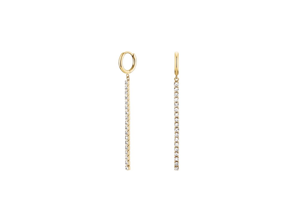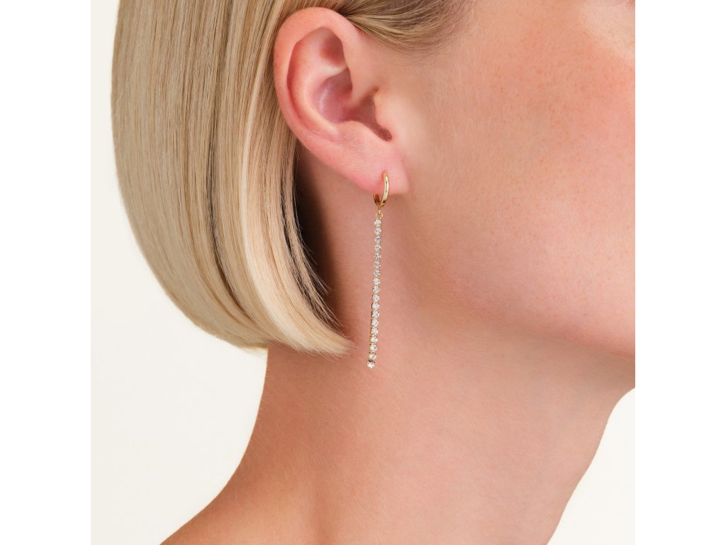 The earrings will enchant you with the combination of a ring and a thin line that smoothly lines the face and gives the wearer a touch of sophistication. The earrings are set with clear crystals that sparkle with your every move.