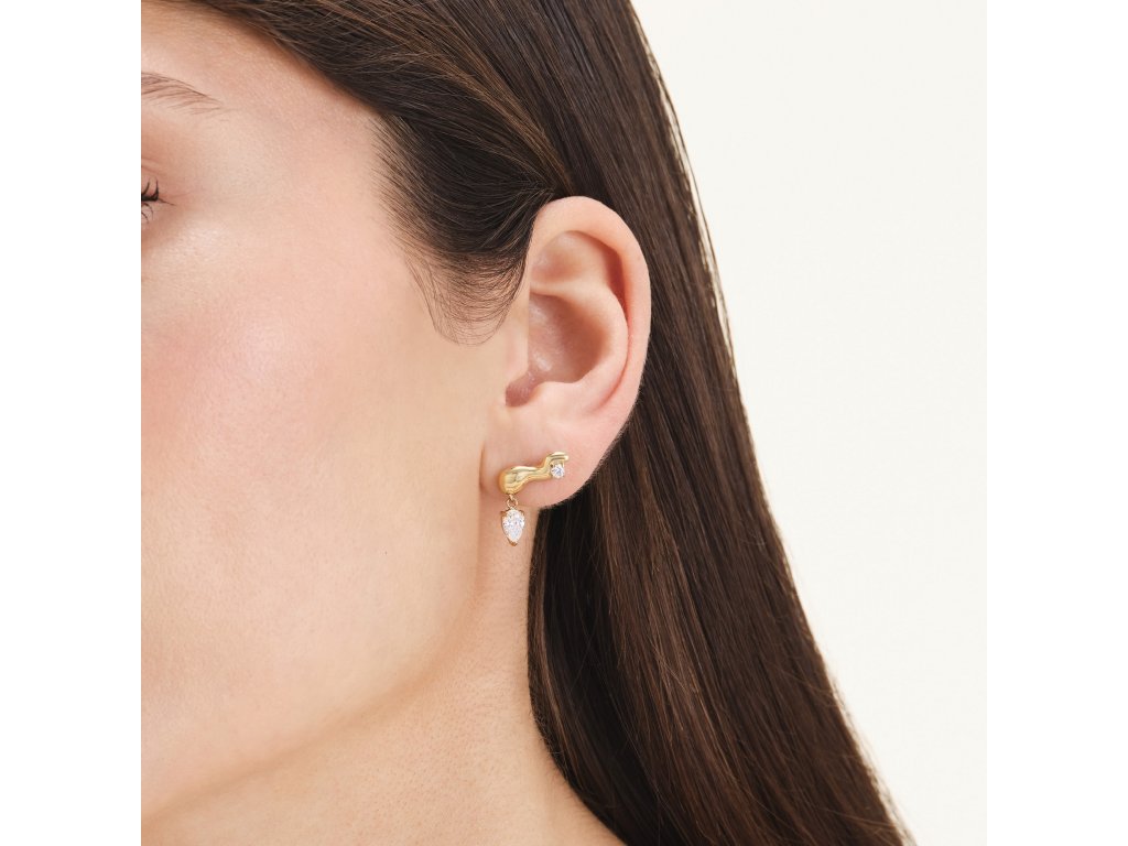 Romantic and Tender – Rosefield Women's Earrings Feature a Dangle Drop-Shaped Crystal That Gently Sparkles with Every Movement. A minimalist design and the subtle shine of gold-plated steel create an elegant piece of jewelry that enhances feminine charm.