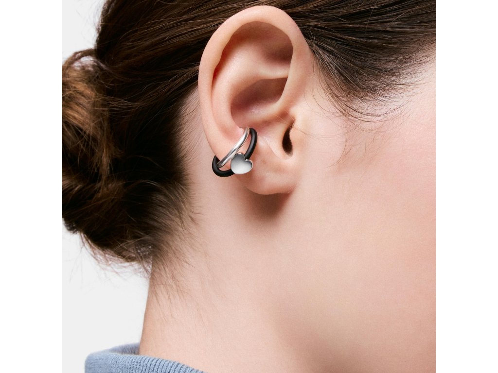 The combination of silver and black rubber creates an interesting contrast that looks both elegant and slightly sporty. The heart motif gives the earring a delicate and feminine accent, making the jewelry a stylish accessory for everyday wear.